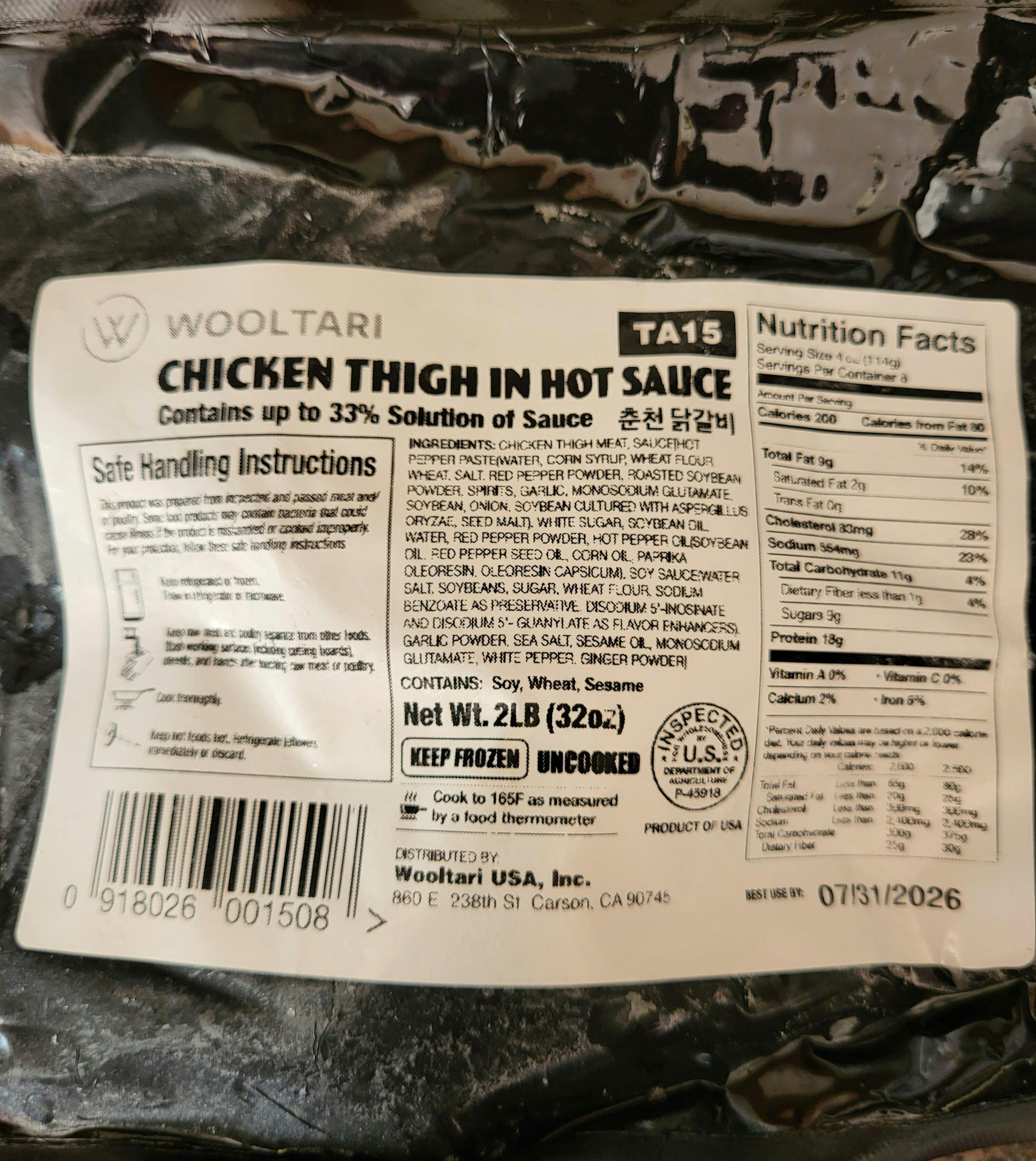 - 닭다리살, 고추장, 물엿, 밀가루, 소금, 고춧가루, 대두유, 마늘, MSG, 백설탕, 간장, 참기름 등