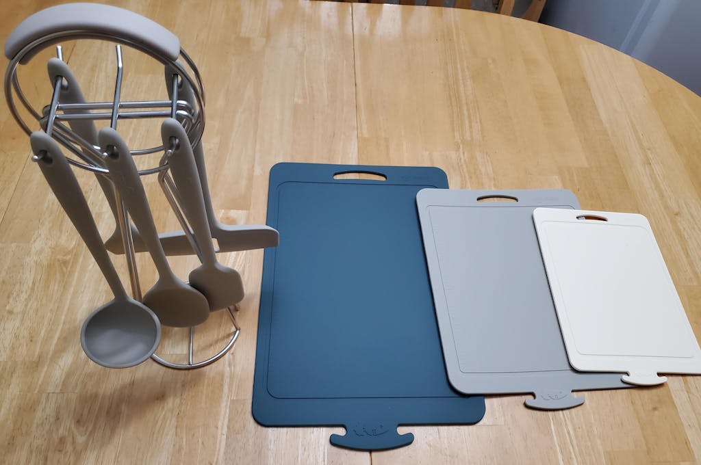 [한국직배송 A] 실리만 하모니 조리도구 5종 거치대 세트 + 하모니 안심도마 3종 옵션구매 - (A3) 실리콘 조리도구 5종 거치대 세트 (코코아그레이)+안심도마 3종(대중소)