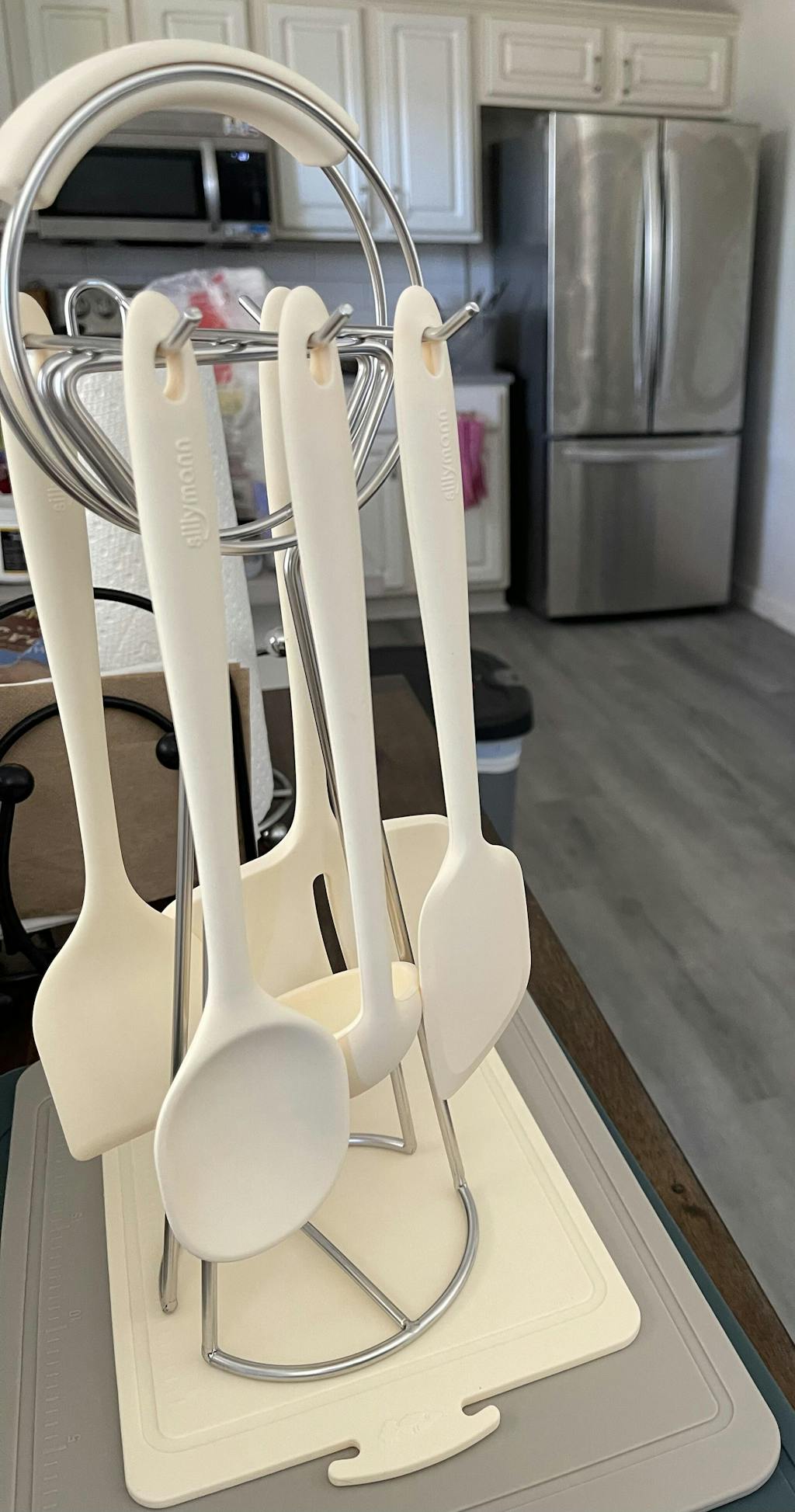 [한국직배송 A] 실리만 하모니 조리도구 5종 거치대 세트 + 하모니 안심도마 3종 옵션구매 - (A4) 실리콘 조리도구 5종 거치대 세트 (크림베이지) +안심도마 3종(대중소)
