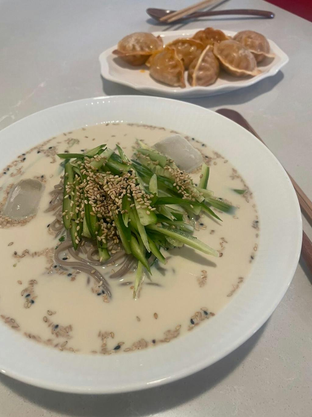 맷돌로 갈아낸 콩국물!