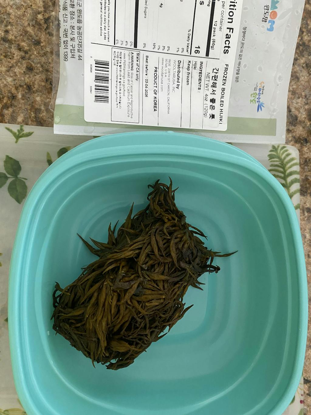 가장 연하고 생기가 왕성할때 채취하여 데친 후 급속 냉동으로 포장하였죠.