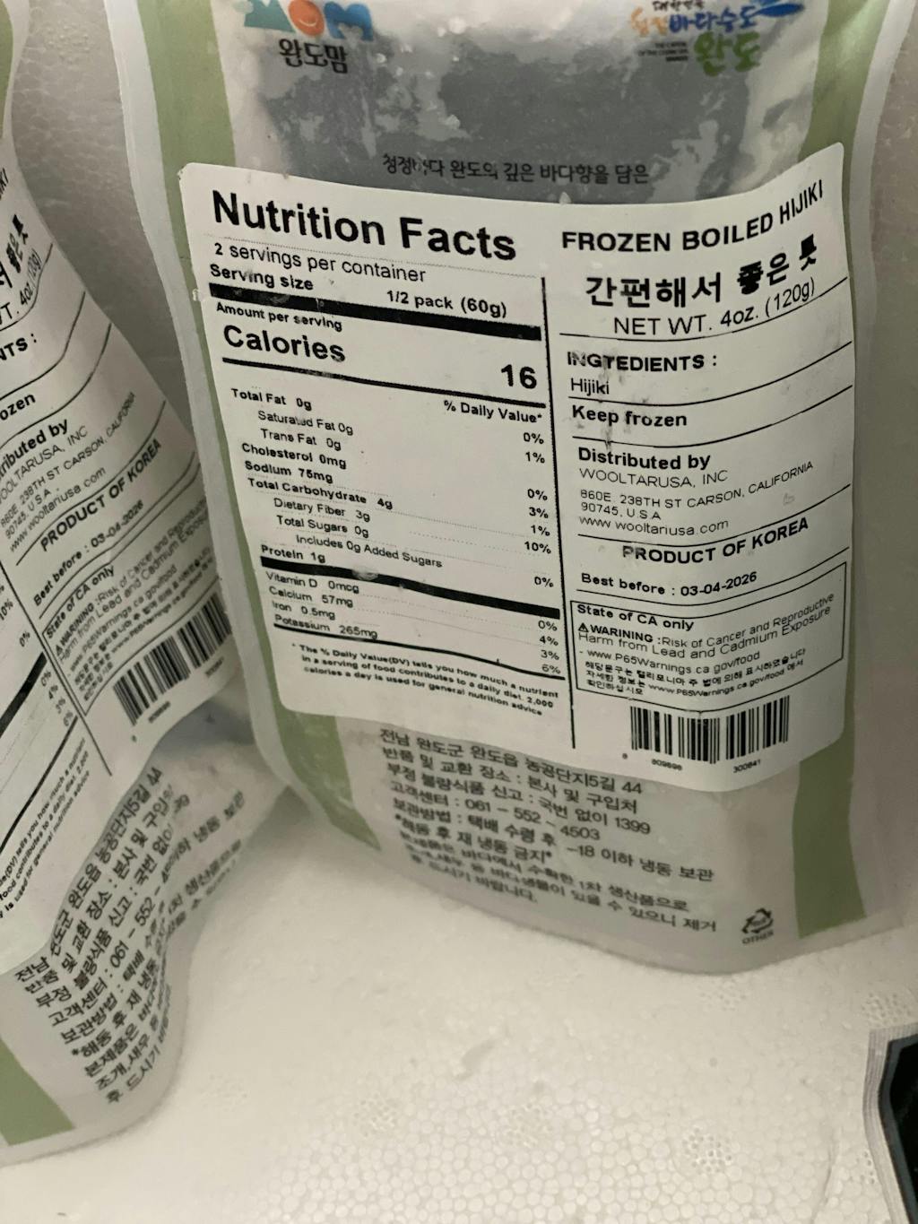 위 고지사항은 캘리포니아 주 법에 의해 표시하였습니다. 자세한 정보는 www.p65Warnings.ca.gov/food 에서 확인하십시오.