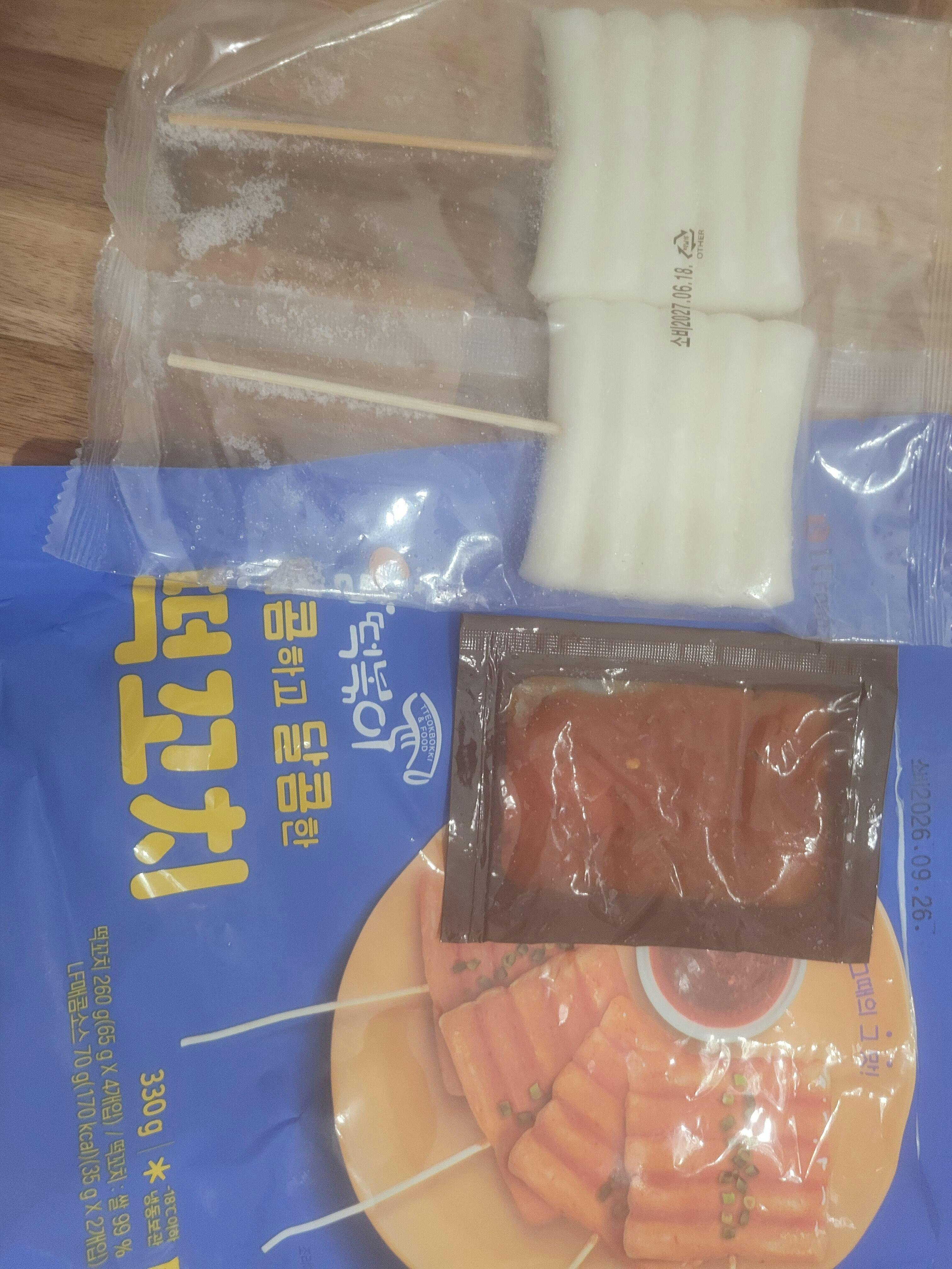 ❉ 떡꼬치 4팩과 떡꼬치 소스 2팩으로 구성되어 있습니다.