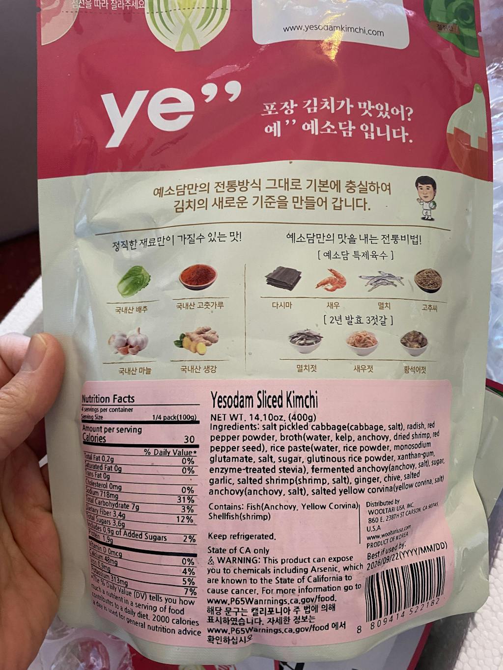 위 고지사항은 캘리포니아 주 법에 의해 표시하였습니다. 자세한 정보는 www.p65Warnings.ca.gov/food 에서 확인하십시오.