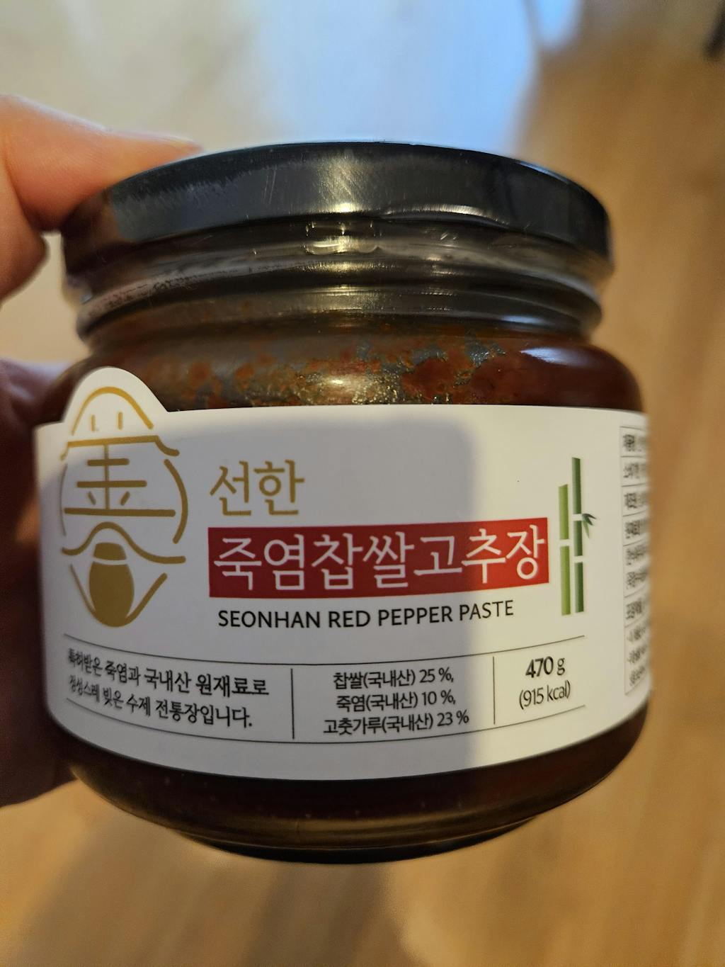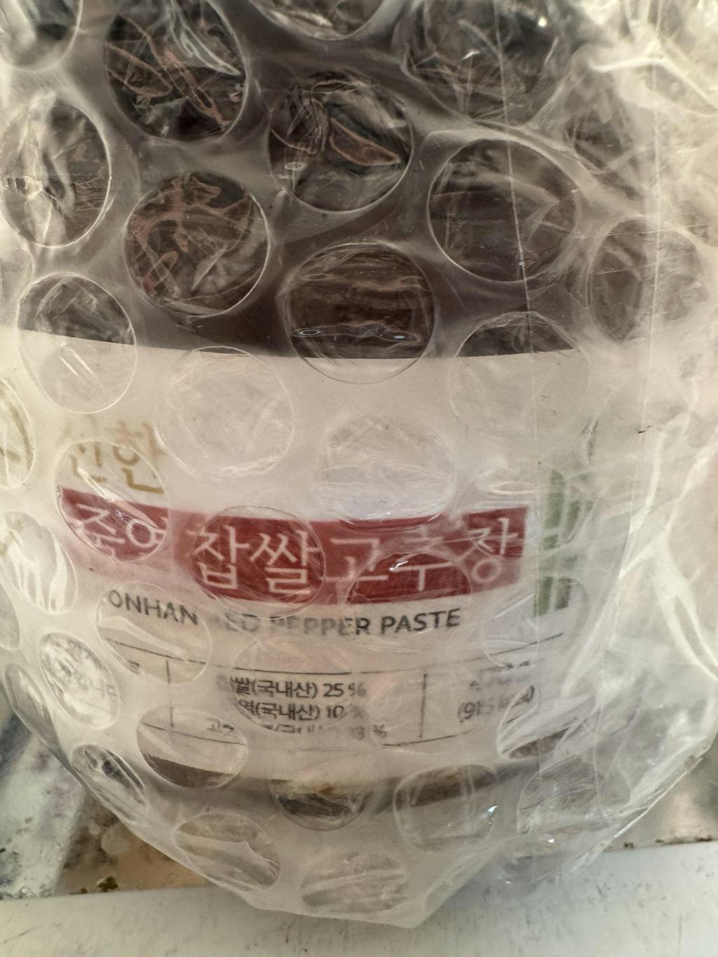 | 원재료명 | 찹쌀(국내산) 25%, 고춧가루(국내산) 23%, 맵쌀(국내산), 메주가루[한식메주(대두-국내산)], 죽염(천일염-국내산)10%, 엿기름(국내산), 한식간장{죽염수(태움음융소금:국내산)}, 대두(국내산) |