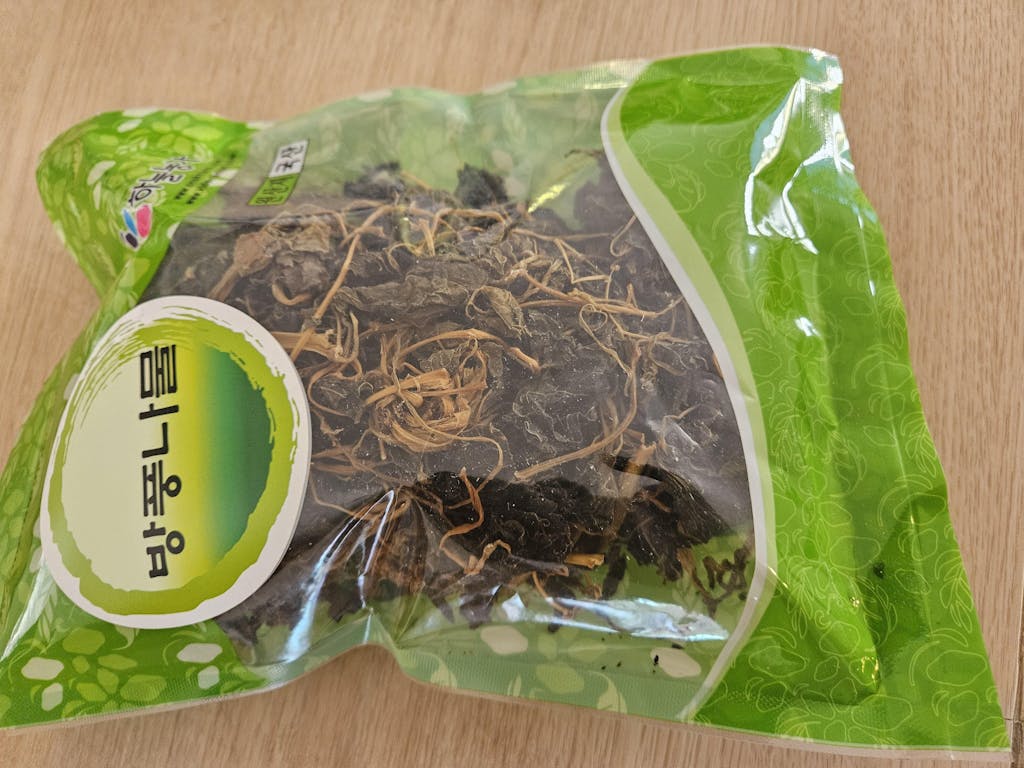 3. Lightly Squeeze excess water, and stir fry in a pan with perilla oil (or any oil of your choice) and preferred ingredients such as garlic, green onion, salt, etc.
