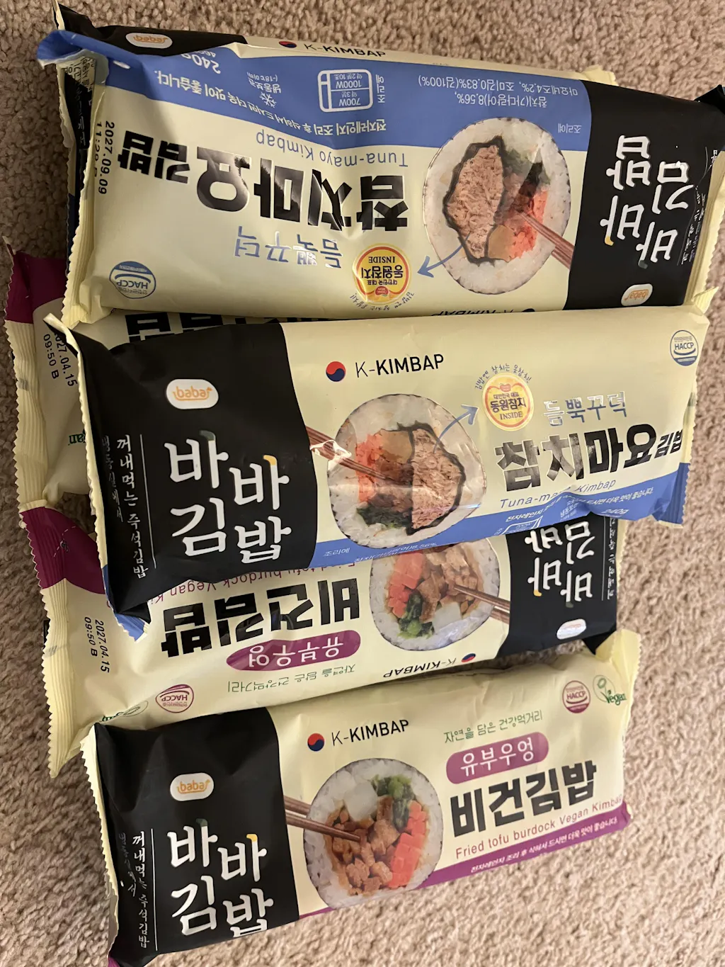 ● Is it really frozen kimbap? Yes, but it's not your regular frozen kimbap. It's flash-frozen at -45 degrees Celsius, so it keeps it