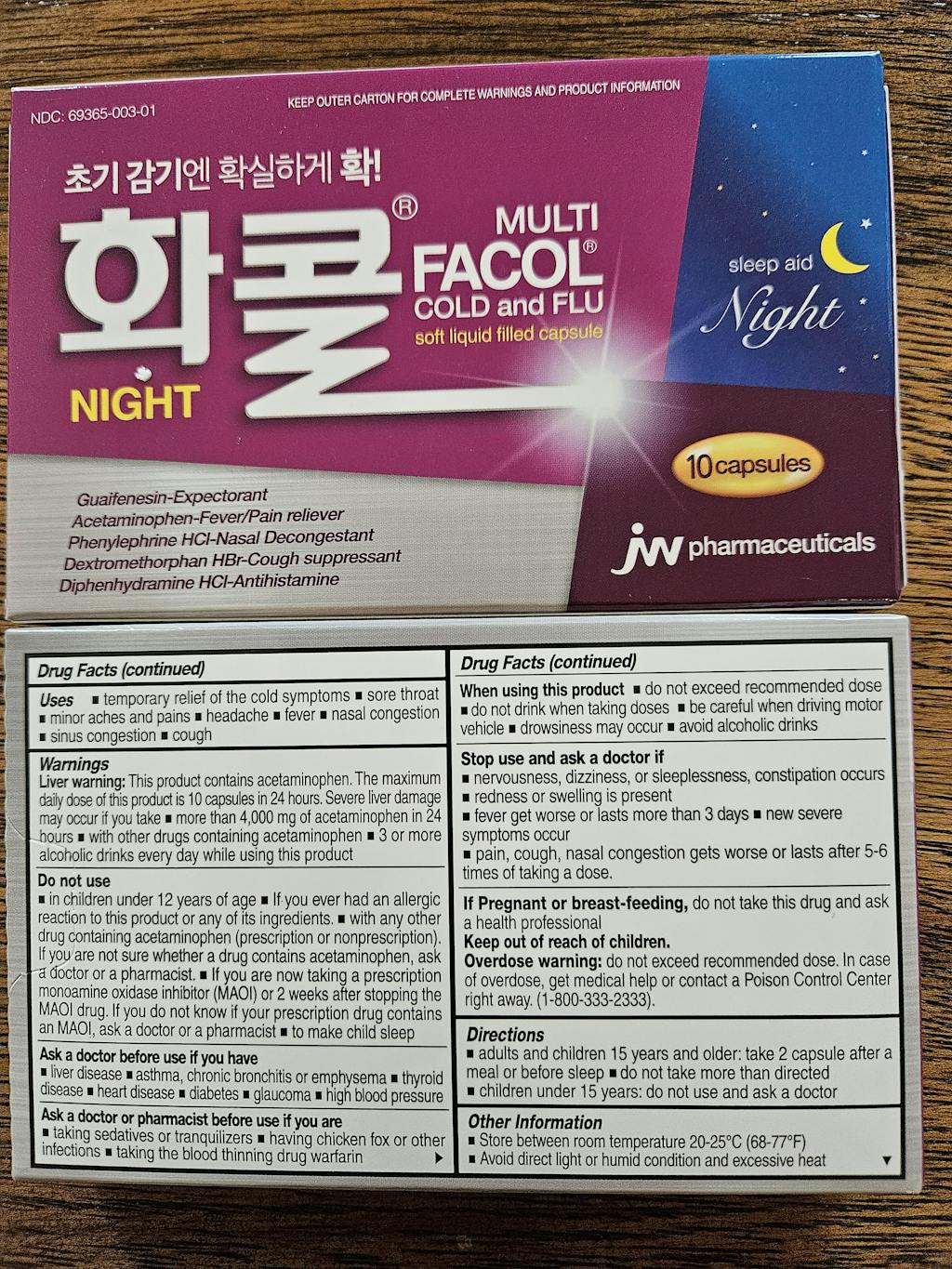 [JW Pharm] Facol Cold and Flu Night (10 Capsule)