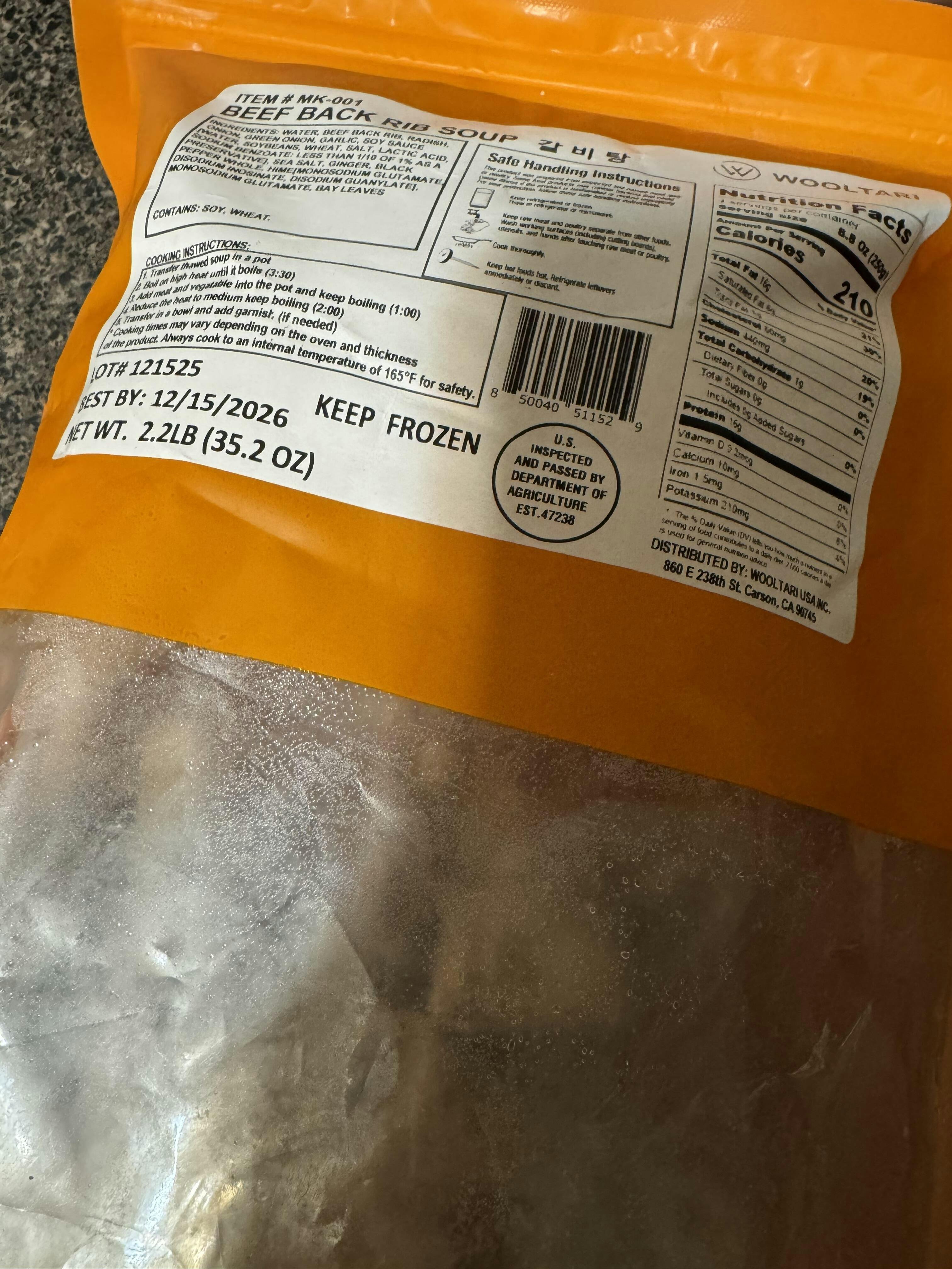 [Wooltari] Fully Cooked Beef Back Rib Soup 2.2lbs