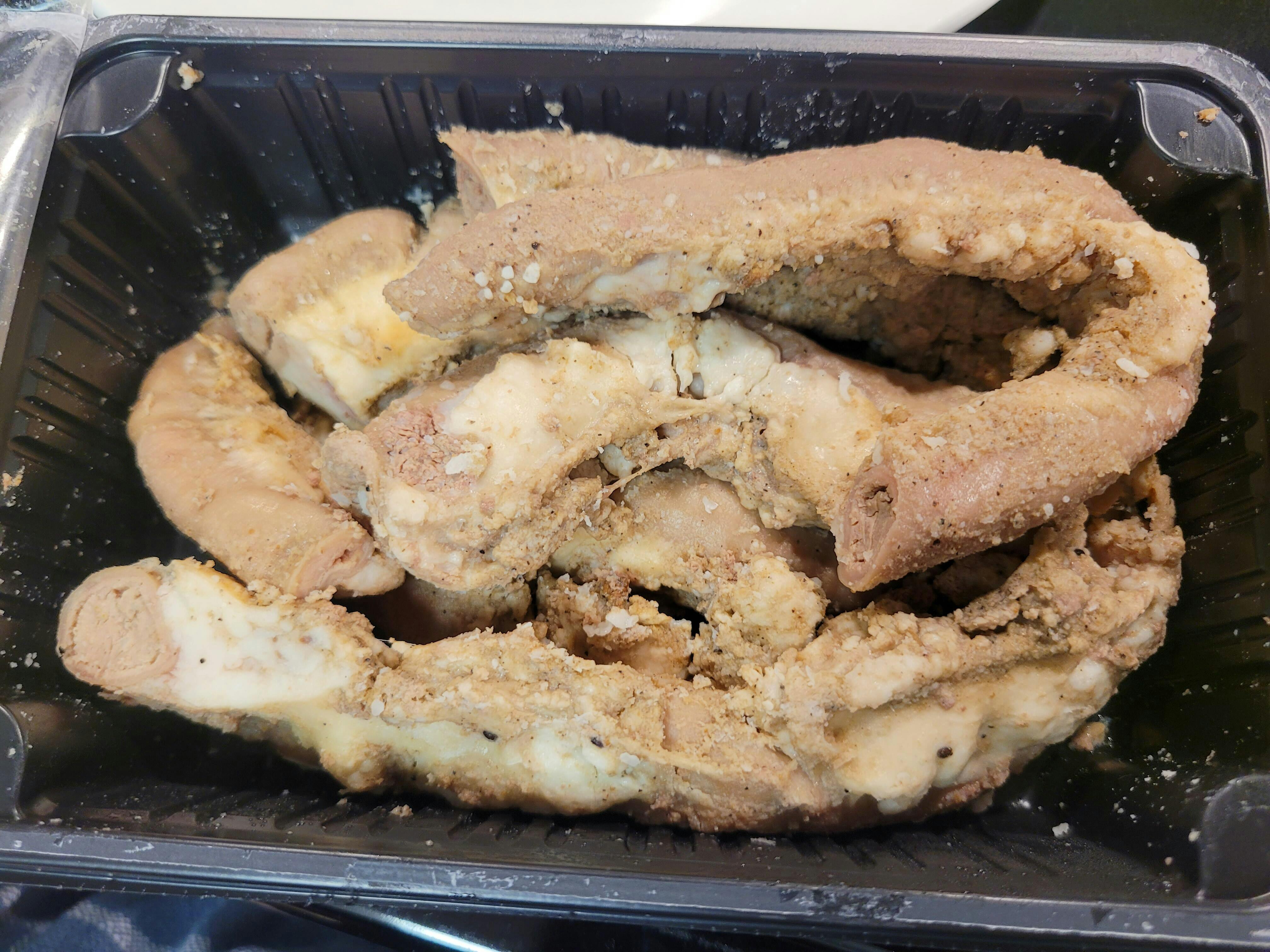 야식으로 먹느라 양의 2/5 정도만 구웠습니다. 재구매인데 곱창이 이렇게 가능한가 싶을 정도로 괜찮아서 계속 재구매할 계획입니다. 구우실 때는 지방이 녹을 때까지 충분히 구우시는 게 팁이고 전골에 넣을 때는 아주 편하고 좋아요. 곱창 사먹을 수 있는 지역에 살지만 혼자 사먹기도 좀 그렇고 사먹큰 건 가격도 비싼데 요게 참 편하고 좋아요.
