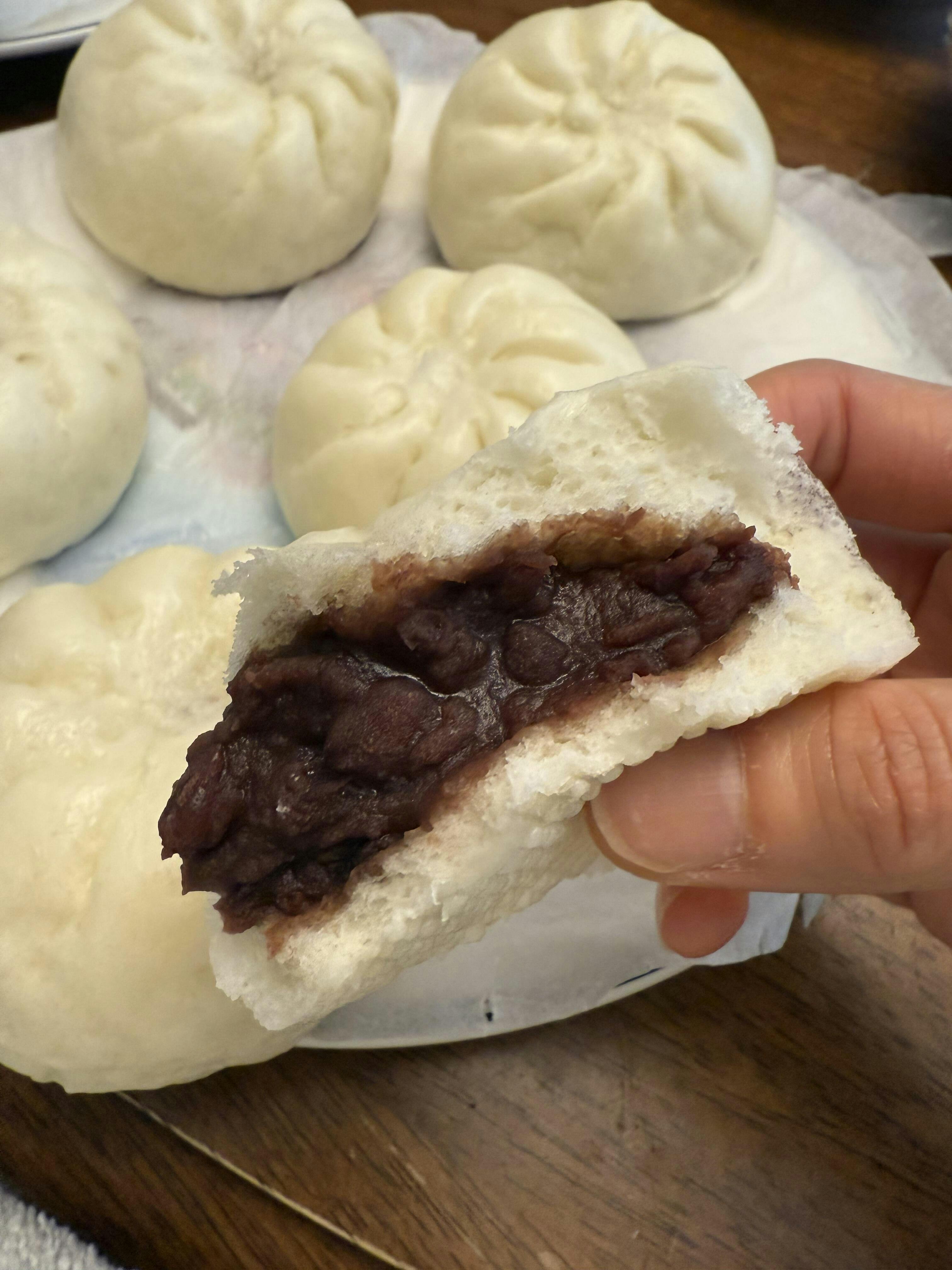 - Classic market-style buns filled with whole red beans