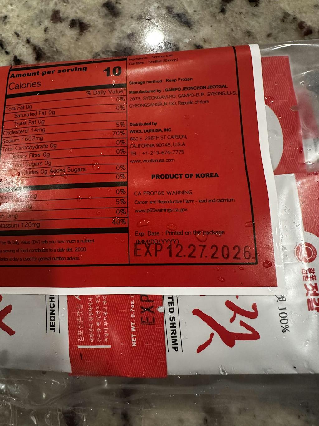 | Ingredients | Domestic - 76% shrimp, 24% sun salt |