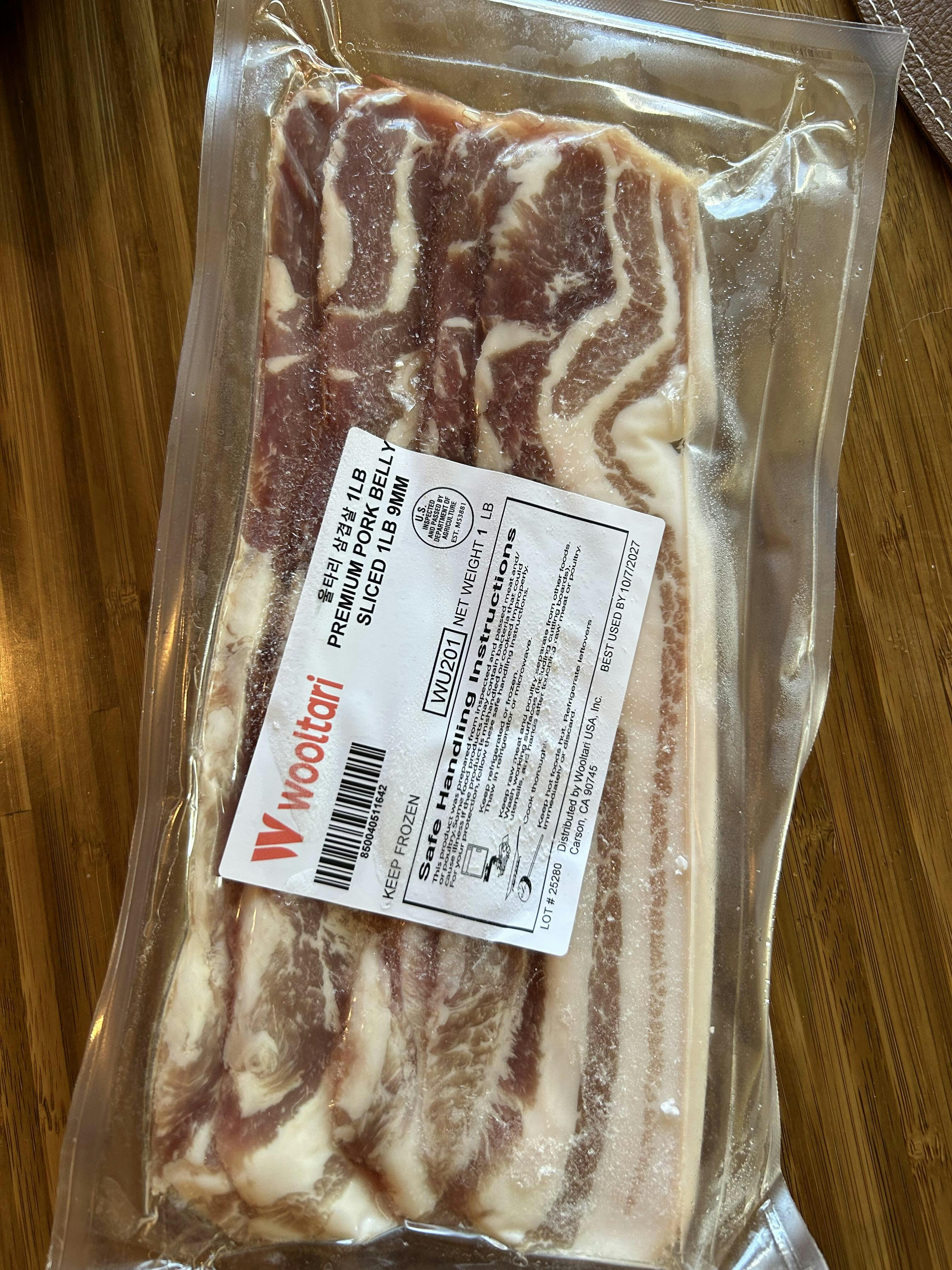 - Premium sliced pork belly 1lb.
