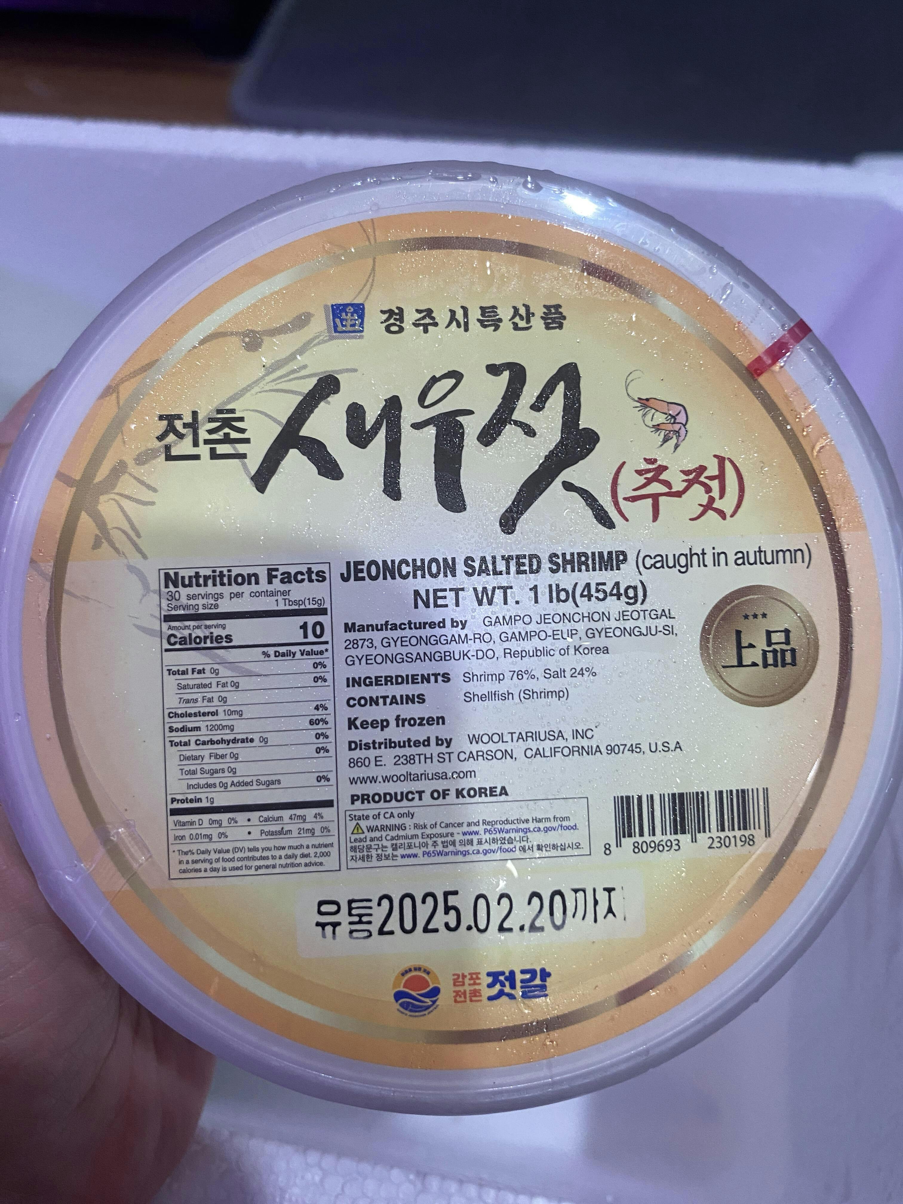 Gampo Jeoncheon Chujeot salted shrimp is made with shrimp caught in between September - October of the Lunar calendar, and salt from Shinan. It features a soft texture, large, plump size, rich nutrition, and a rich flavor.