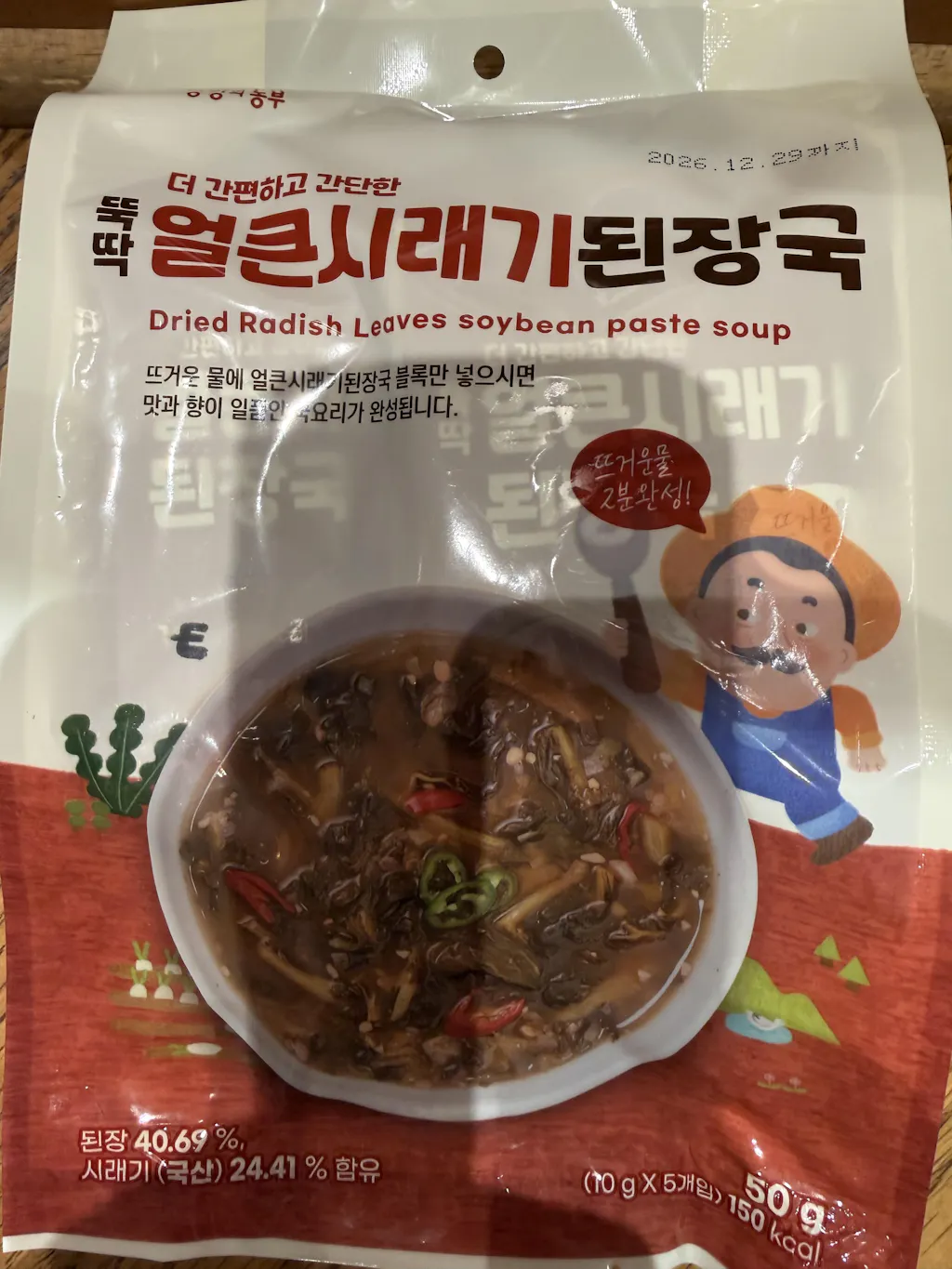 Yangyang farmer's spicy dried radish greens soybean paste soup is a freeze-dried product that transforms into savory soybean paste soup with just hot water. It contains all the nutrients, texture, and aroma of domestic dried radish leaves. In addition, it can be stored at room temperature and is packaged in a block form in single servings, making it convenient for daily consumption or traveling.