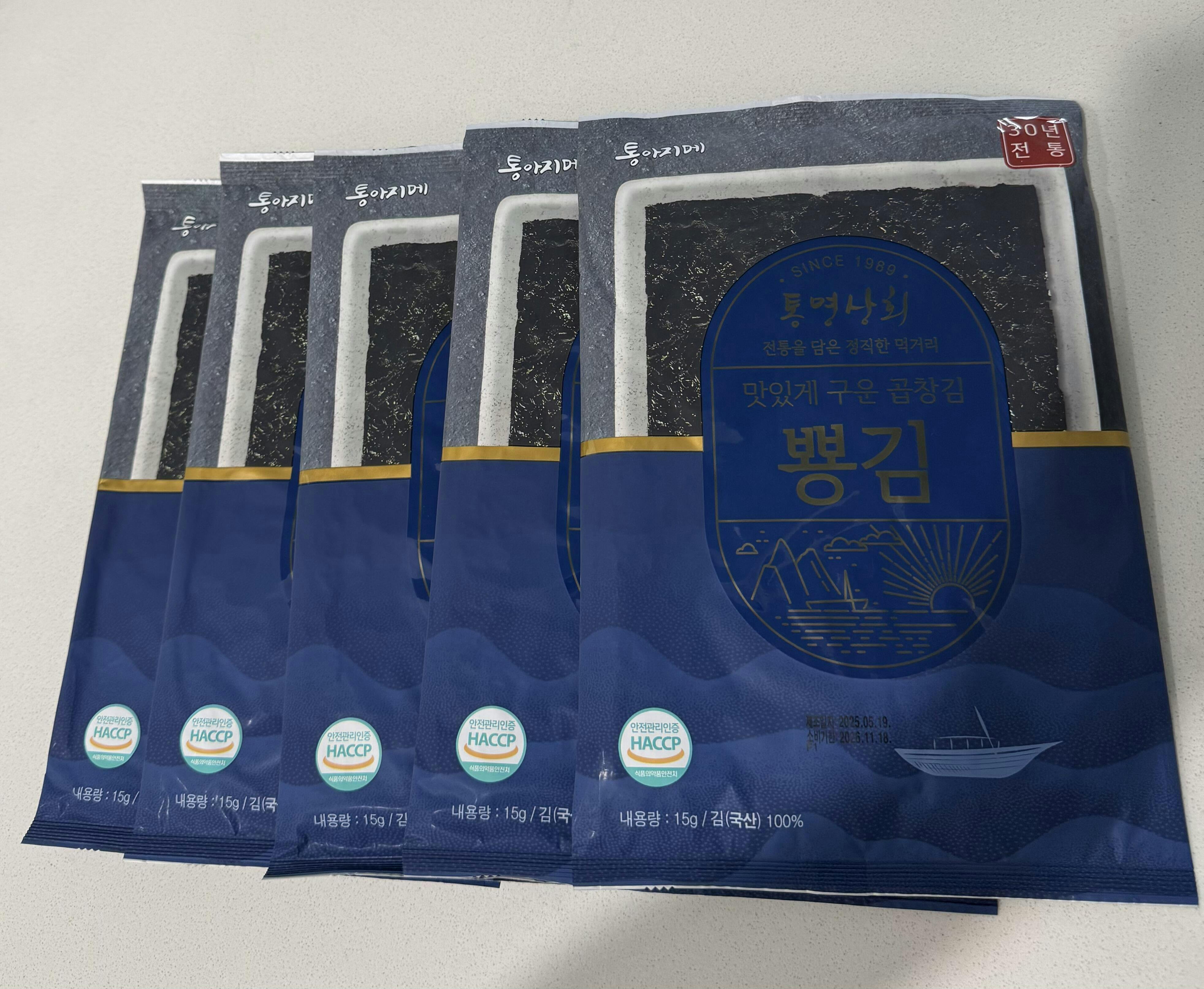 "Pyong-gim" has been famous for a long time as a specialty at the local Jukdo market in Korea. It boasts an extra crunchy and flavorful taste without any seasoning