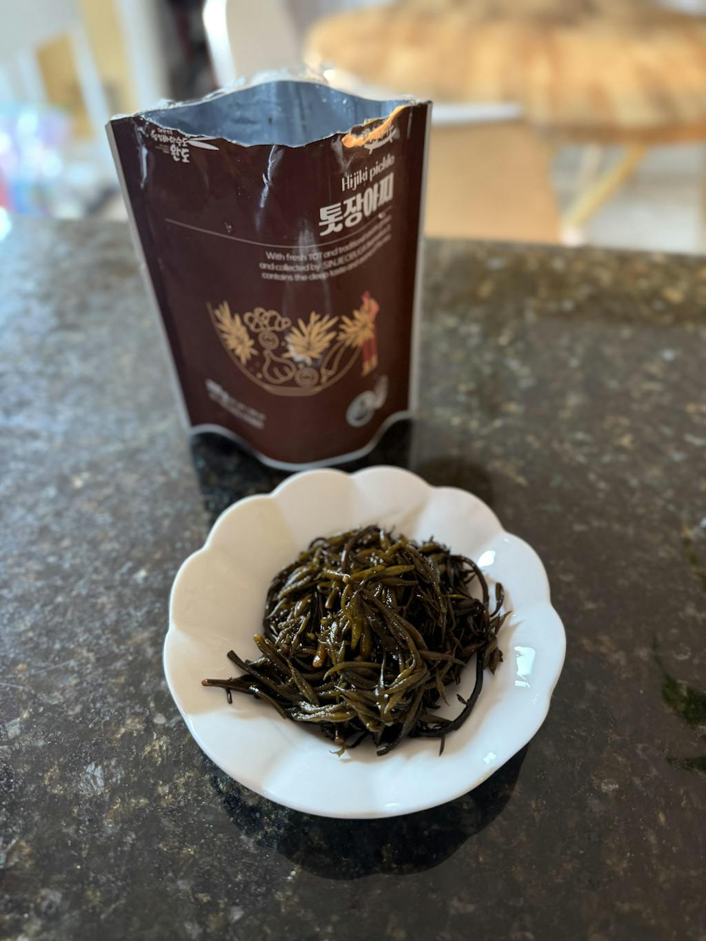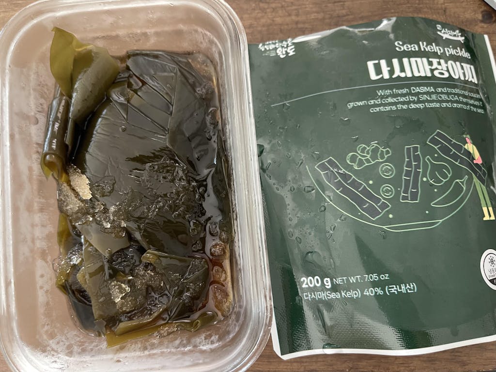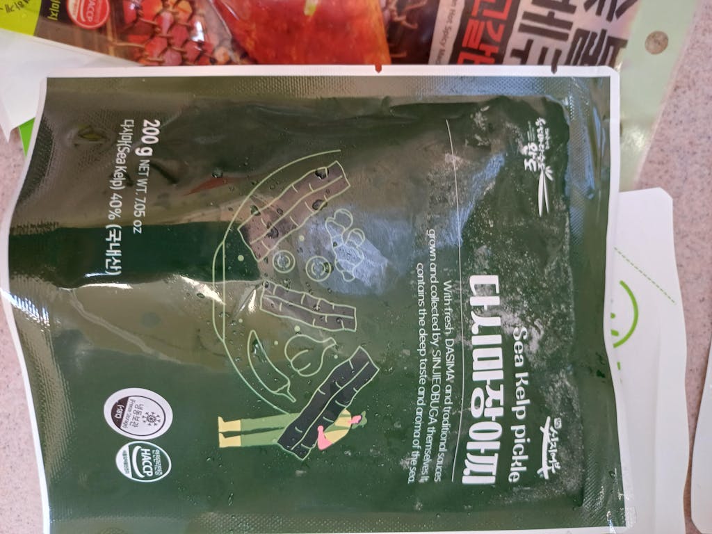 Introducing delicious seaweed pickles made from 100% fresh Wando kelp, aged in homemade soy sauce for a balanced flavor that's neither too salty nor too sweet. Perfect as a side dish with rice, a salad topping, in gimbap, and more.