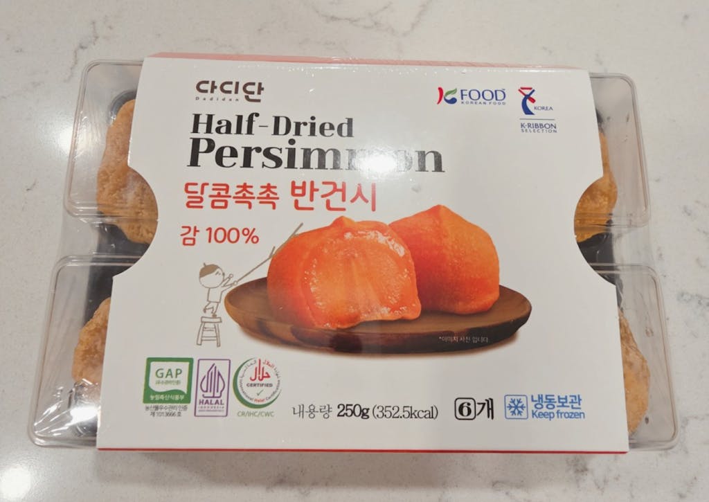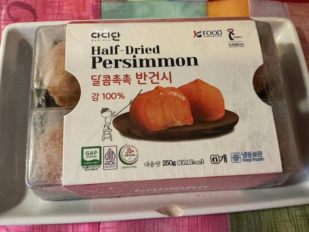 ❉표면의 하얀가루는 껍질을 벗겨 말리는 과정에서 빠져나온 당분이 농축되고 건조되면서 결정화된 것으로 "시상"이라고 불립니다. 이 시상은 한의학에서 호흡기 치료약으로 쓰일 정도로 호흡기 건강에 아주 좋다고 알려져 있으니 안심하고 맛있게 드세요~!