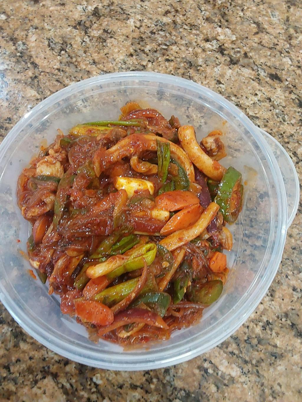 新鲜炒鱿鱼,配以甜辣调味料和大量大蒜,突显鲜美的鲜味。根据个人口味加入您喜欢的蔬菜或年糕,然后将剩余的调料与米饭混合,享受韩式辣炒饭。烹饪说明: