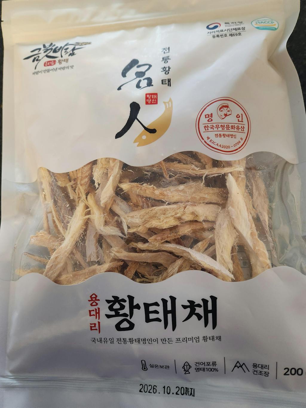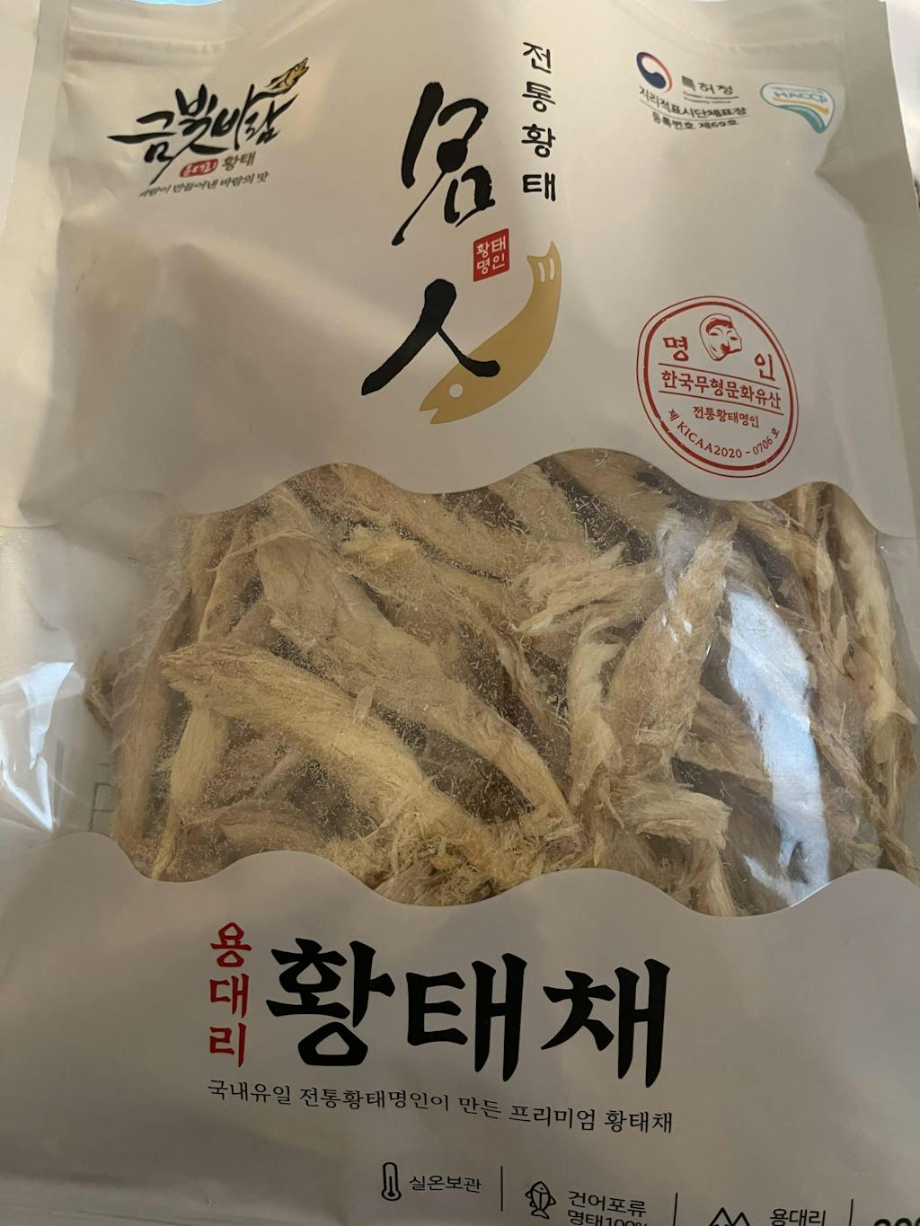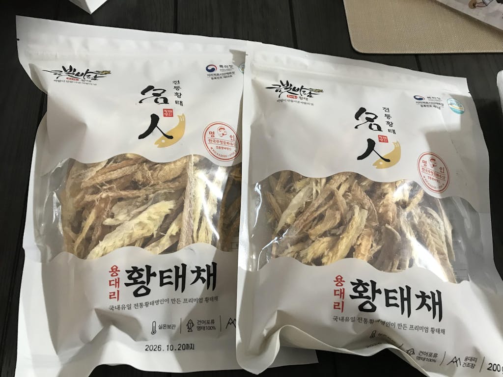용대리 자연건조 100%로, 청결한 위생 관리와 까다로운 황태 건조 노하우의 숙성 공법 과정을 거쳐 우수한 품질의 제품을 생산하였죠.
