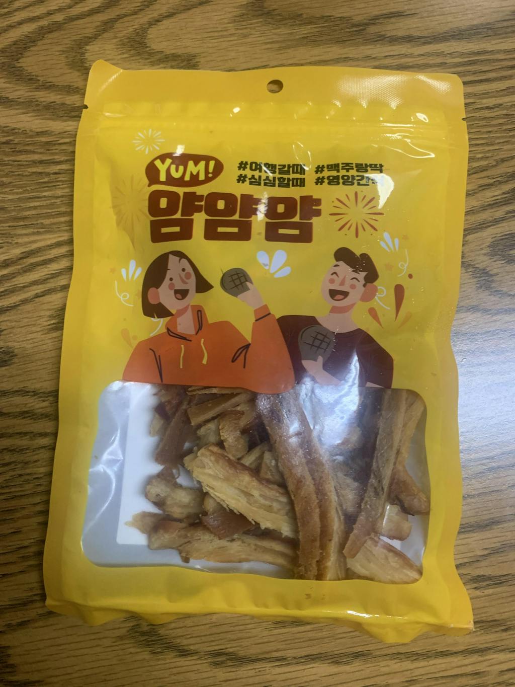 쫄깃한 오징어를 로스팅하여 손으로 찢어 먹게 야들야들한 결이 살아있죠.