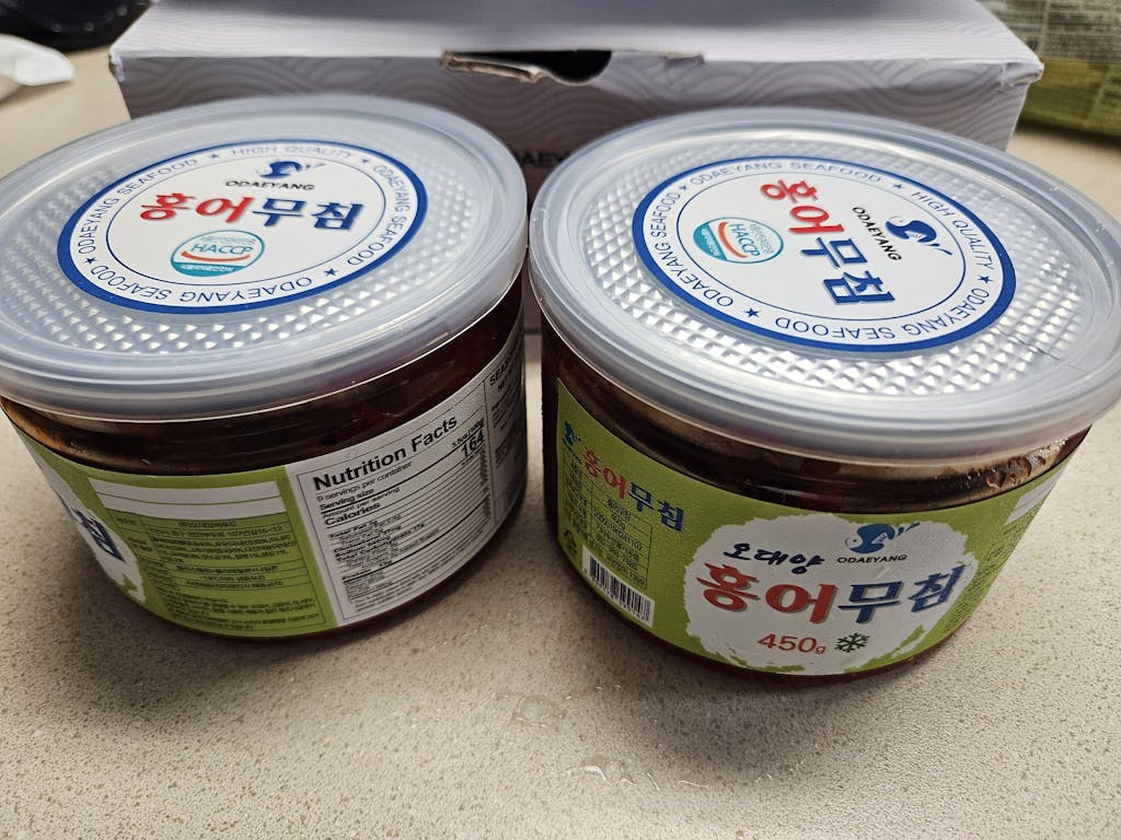 发酵的鳐鱼仅用环保成分和100%发酵醋调味。它具有嚼劲十足和独特的鳐鱼质地,配有美味的酸甜辛辣韩国酱汁。