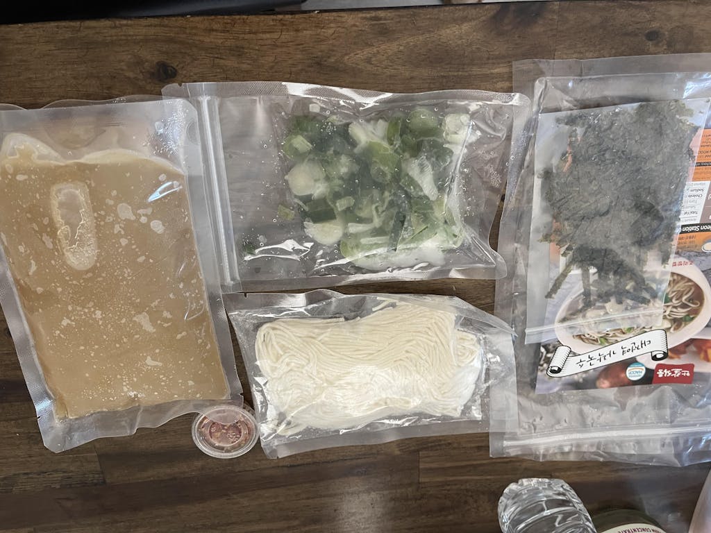我们的汤底不是粉末状的,而是由高品质的凤尾鱼、海带、萝卜、洋葱、葱和红辣椒种子制成。